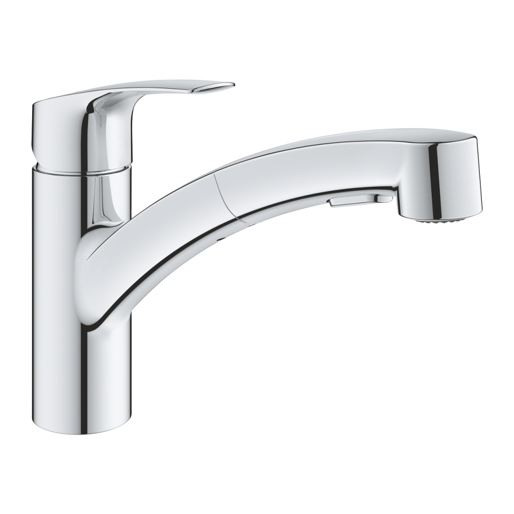 Végezze el a konyhai feladatokat egy könnyen felszerelhető csappal, amely egy mobil, nagy teljesítményű kihúzható szórófej hasznos funkcióját kínálja – a GROHE Eurosmart egykaros mosogatócsaptelep. A dizájn klasszikusa a modern konyhák igényeinek megfelelően lett felfrissítve, vékony, modern profillal és nagyobb felhasználói kényelemmel. Ezt a konyhai csaptelepet egylyukú telepítésre tervezték. Az alacsony kifolyó egy kihúzható kettős spray-vel rendelkezik, amely maximális mozgásszabadságot biztosít, és egyetlen gombnyomással válthat a fröccsenésmentes lamináris spray és az erőteljes sugárspray között – akár zöldséget öblít, akár edényeket tölt meg a mosogató tisztításához. A csaptelep kikapcsolásakor automatikusan visszatér a lamináris spray-hez. A kifolyó simán 90˚-ban elforgatható, így szűk helyeken is kényelmesebb. A GROHE SilkMove patrontechnológia egész életen át tartó sima és pontos vezérlést biztosít, míg az elszigetelt belső vízutak azt jelentik, hogy a víz ólom- és nikkelmentes a csapban. Az állítható térfogatáram-korlátozó vizet és pénzt takarít meg, míg a beépített hőmérséklet-határoló segít megelőzni a forrázást. A csillogó GROHE Long-Life króm bevonat karcálló, így káprázatos felületet biztosít, amely tartós és tartós. Ehhez a csaphoz legalább 1,0 bar nyomás ajánlott.