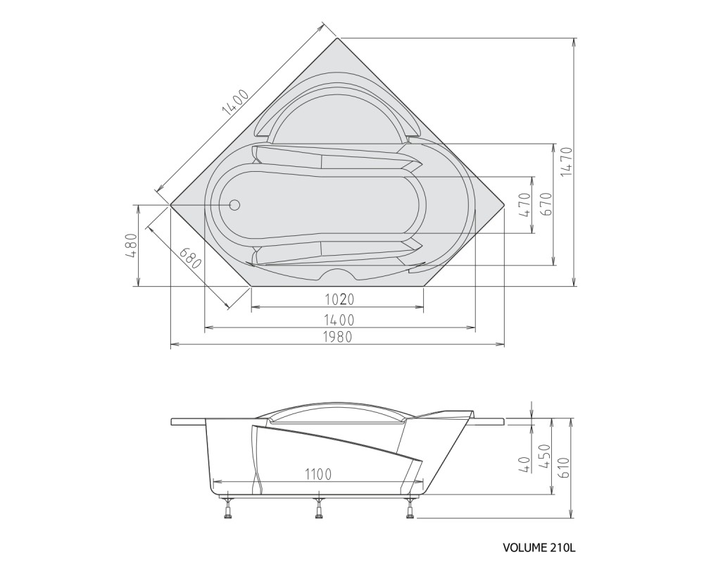 POLYSAN LIDIE sarokkád, 140x140x45cm (97111)