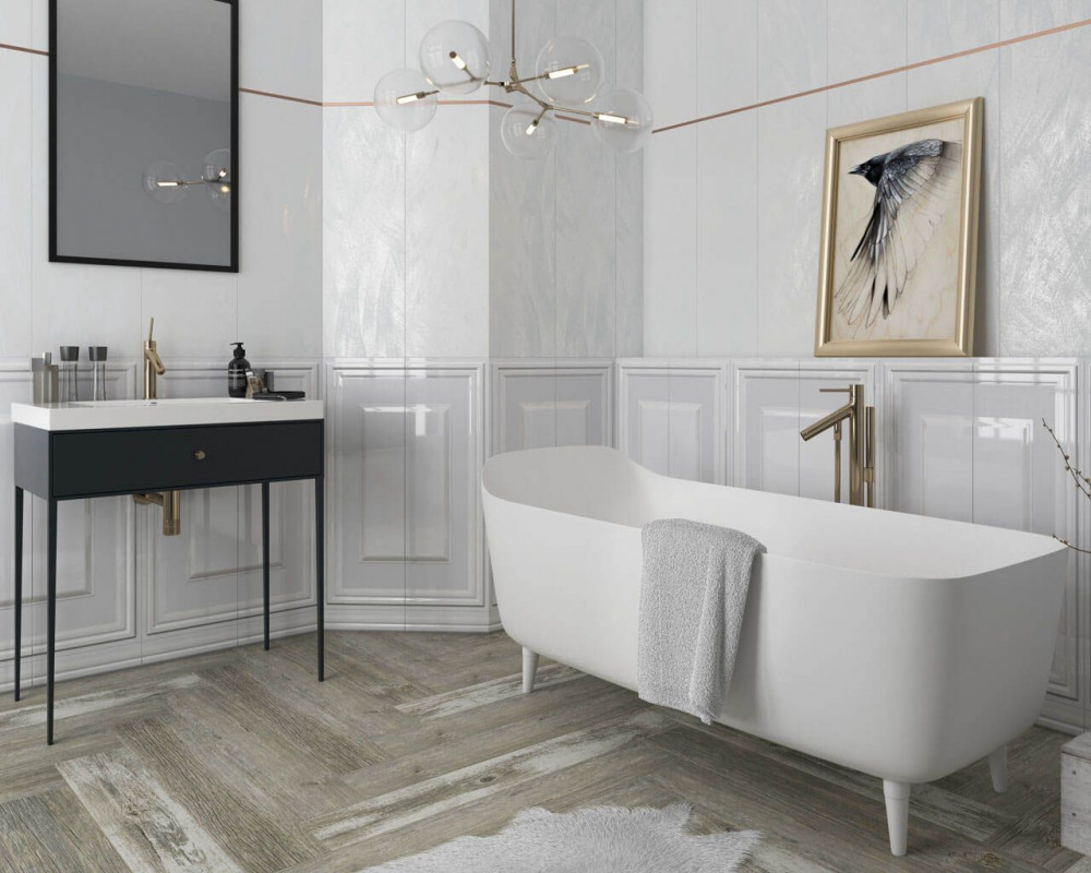 Chevron Bianco Ściana Rekt. Stucco 29.8 x 89.8 cm